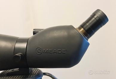 Cannocchiale terrestre Meade, ottimo per birdwatching, sport, tiro con arco, poligono, anche osservazioni astronomiche. Lungo circa 42cm. Lenti eccellenti, niente funghi o difetti. Si sono cancellate le etichette (lo possiedo da circa 20 anni) ma dovrebbe essere diametro 75mm e ingrandimento zoom 20/60x (15/45×?). La base dell'oculare ha una filettatura, serviva con adattatore a montare macchine fotografiche. Il cannocchiale può ruotare, per adattare l'altezza dell'oculare a diverse persone. Il treppiede è Konus, con attacco per il cannocchiale a slitta. Lungo chiuso cm 70. La foto dei tetti e antenne ripresa al minimo ingrandimento, semplicemente appoggiando il telefono all'oculare