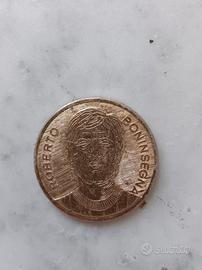 L'immagine mostra una moneta commemorativa o un gettone con un'incisione che raffigura un volto e il nome "ROBERTO BONINSEGN".