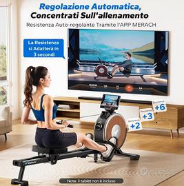 App MERACH esclusiva: collega il dispositivo all'app MERACH tramite Bluetooth per monitorare i dati di allenamento, i progressi e il consumo calorico in tempo reale. Oltre 1.000 percorsi e giochi interattivi garantiscono un allenamento coinvolgente e motivante.