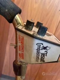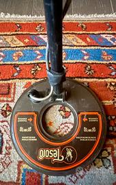 Tesoro Conquistador (Per conoscenza manca lo sportellino in plastica copri batteria da 9 volt) Il Tesoro Conquistador è un Metal detector analogico con pochi comandi,semplice da usare. Il cambio di frequenza in stile trigger del Conquistador è veloce e facile da usare. Nel bel mezzo di una caccia, non dovrai giocherellare con manopole e quadranti. Basta cliccare e spazzolare. Puoi anche cambiare le frequenze nel mezzo della spazzolata. Il Conquistador è dotato della famosa discriminazione ti aiuta a prendere il tesoro dalla spazzatura. Frequenza VLF 10 kHz Una batteria drop-in da 9 volt Modalità All Metal No-Motion Soglia variabile Modalità di discriminazione della ricerca The Tesoro Conquistador is made for the serious competition hunter and has the features that give you the ability to cut through the interference and find the coins that your competitors are missing. The Conquistador's trigger-style frequency shifter is quick and easy to use. In the middle of a hunt, you won't have to fiddle with knobs and dials. Just click and go. You can even change frequencies in the middle of a swing. The Conquistador comes with Tesoro's MAXBoost sensitivity, which will allow you to find the deeper targets. Our famous discrimination helps you pick the treasure out of the trash-making it a detector that does everything. The next time you go off to do battle on the hunt field, don't take just any old detector. Take a Tesoro Conquistador. MicroMAX Design Built-in Mineral Rejection VLF 10 kHz Frequency One Drop-in 9 volt Battery No-Motion All Metal Mode Variable Threshold 3-Piece Knockdown Pole Silent Search Discriminate Mode Low Noise Circuitry Frequency Shifter 8" Concentric Coil
