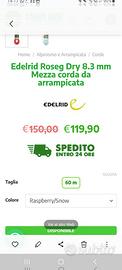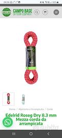 mezze corde nuovissime, acquistate il 04 aprile 2025, mai utilizzate, cadauna corda valore 150 euro, acquistate a 120 euro cadauna, vendo a 150 euro entrambe (acquistate a 240 euro). Marca Edelrid roseg dry 8,3 mm da 60 mt. VENDITA SOLO BREVI MANU (in forma diretta ed immediata). Chi interessato contattare 331.3736950