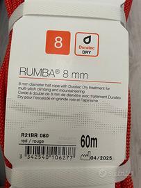 Una coppia di mezze corde nuove Petzl Rumba 8 mm, 60 m. Data di produzione: aprile 2025. Pacco originale, mai usate. Ottime per l'arrampicata su roccia (alpinismo, vie di più tiri) e sul ghiaccio. Trattamento Duratec Dry. Peso al metro: 44 g.