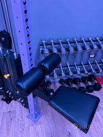 Si tratta di un crossover angolare della serie Mighty, con design robusto e compatibile con accessori Mighty. È progettato per ottimizzare gli spazi angolari, permettendo esercizi come let machine , e tutti gli eserzi ai cavi con carrucole regolabili in altezza. In più aggiungo come accessorio sellino regolabile per let machine dal valore di 290€