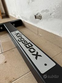 Le colonne verticali sono provviste di fori e numeri ritagliati al laser, rendendo facilissimo lo spostamento dei supporti J-cups per il bilanciere. Sono incluse anche un paio di J-cups per il supporto del bilanciere.