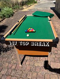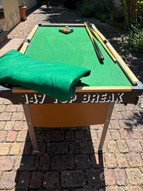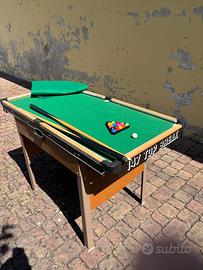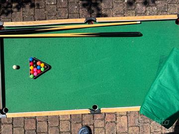 Mini biliardo con stecche Montabile e smontabile facilmente Dimensioni: 58x118cm -2stecche -palline con triangolo -tappeto di copertura/ricambio Non spedisco