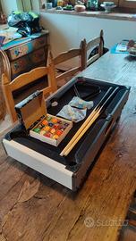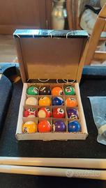 Contenuto: 1 set di palle da biliardo, 2 stecche, 1 spazzola, 2 gessi, 1 triangolo.