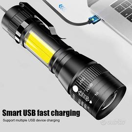MINI TORCIA MILITARE TATTICA LED T6 RICARICABILE USB LUCE POTENTE ZOOM 300 METRI