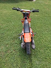 minimoto per bambini con motore 2 tempi a benzina con variatore, freni a tamburo, accensione a pedivella, senza marce, facile da usare e potenza ridotta, forcelle telescopiche classiche, tutto funzionante