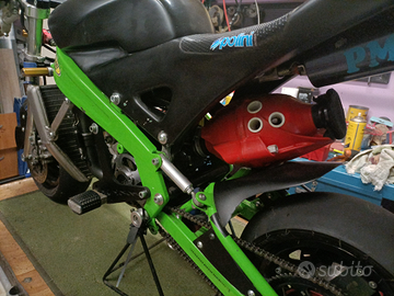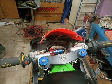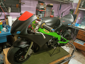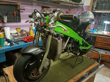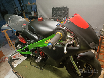 Minimoto Pasini esemplare unico ad essere numerato 01 realizzata non in serie con il telaio in una lega speciale .la moto non è sfruttata no gare e usata amatorialmente ciclistica full optional radiatore maggiorato freni idraulici formula il motore appena revisionato 50cc tutto con ricambi originali carburatore racing nero da 21 per informazione chiedete in oltre con la moto regalo molti ricambi .