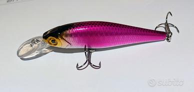 Vendo esca artificiale Minnow / Crankbait con paletta, colore oro–rosa UV molto visibile in acqua e ideale per lo spinning in fiumi, laghi e canali.