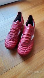 Scarpini misto pelle (parte anteriore) e materiale sintetico. La suola in alcuni punti ha cominciato a staccarsi e i tacchetti non sono perfetti. Lo scarpino in sé è fantastico, leggero, e la pelle è ottima. Adatto per terreni in erba e erba sintetica.