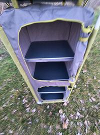 Mobile da campeggio/giardino comprensivo di ripiani e sacca. Usato poco e ben tenuto. Montaggio/smontaggio facile e veloce.