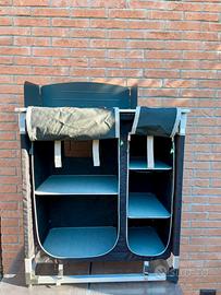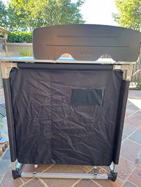 Mobiletto sottofornello per campeggio marca Brunner dim. L. 85 - P. 52 - H 90 cm. peso 9kg. in alluminio - 100% poliestere, frangivento e borsa per il trasporto, come nuovo, usato solo due volte