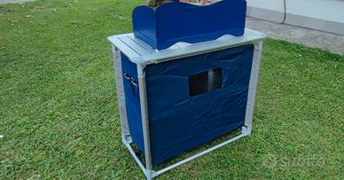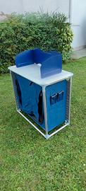 Completo di paravento, nel caso si utilizzasse un fornello per cucinare, e di borsa per il trasporto dei vari componenti una volta smontato.