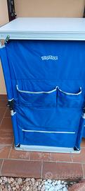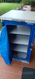 mobiletto pieghevole da campeggio con 4 ripiani, usato pochissimo colore blu.