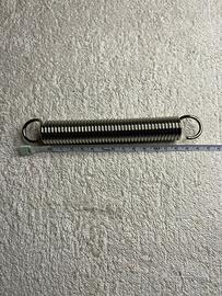Questa è una molla a trazione realizzata in acciaio, lunga 12 cm (non compresi i ganci alle estremità). La struttura è costituita da spire ben serrate e regolari, progettate per lavorare sotto sforzo di trazione, ovvero per allungarsi quando viene esercitata una forza sulle estremità.Entrambe le estremità presentano un gancio ad anello chiuso, utile per fissare un sacco da boxe o per un fissaggio sicuro di diversi componenti.