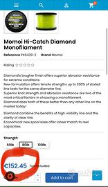 Vendo più di mezza bobina di filo in nylon 80 Lb Momoi Hi-Catch Diamond 0.90 mm da 1000 yard colore SC, con scatola originale, sempre conservata al buio e preservata al meglio. Sono più di 500 metri di filo. Filo in nilon per mulinello da Drifting in big Game al tonno rosso, spada o ricciole. Consegna a mano su Roma o Latina, oppure effettuo spedizione in tutta Italia 24h. NON SCAMBIO E NON PERMUTO CON NULLA.