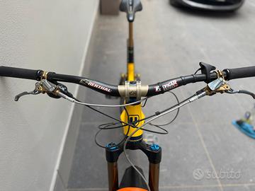 - manubrio RENTHAL FATBAR CARBON 35 con attacco RENTHAL APEX 33 e distanziatori HOPE di colore blu;
