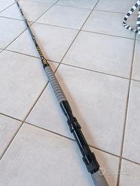 Canna da traina robusta ed affidabile, progettata per la pesca costiera e d’altura leggera. Lunghezza di 6’4” (193 cm) per una gestione precisa e reattiva, con azione 12-20 lb ideale per ricciole, palamite, tonnetti e dentici. Struttura in vetroresina rinforzata, anelli legati a doppio ponte e impugnatura in EVA ad alta densità.