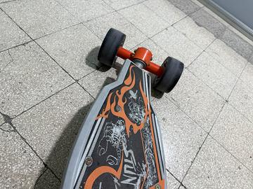 Monopattino a 4 ruote OXELO acquistato alla decathlon, colorazione nero e arancio. In perfette condizioni utilizzato poche volte, ruote perfette (solo da pulire), gomma del manubrio destro un po rotta ma non visibile perché nella parte inferiore.