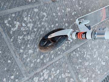 Monopattino tutto in alluminio portata Kg 100 grandi ruote robuste diametro cm 20, pieghevole. Freno a piede su ruota posteriore. Adatto per bambini e adulti.