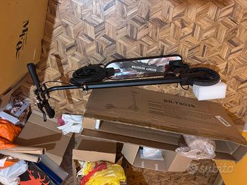 Vendo monopattino a spinta pieghevole Praticamente nuovo, usato solo una volta e rimasto in casa tutto il tempo Completo di scatola Adatto a bambini ed adulti con manubrio regolabile. Vendo per inutilizzo Tracolla per trasportarlo Freno a disco Ruote anti foratura Basrey - BR-T802S