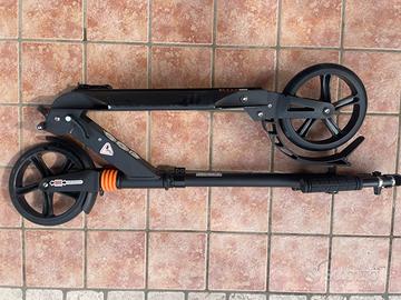 Monopattino a spinta per ragazzi, biammortizzato, pieghevole. In buone condizioni usato poco, completo di cinghia, attrezzi e libretto istruzioni.