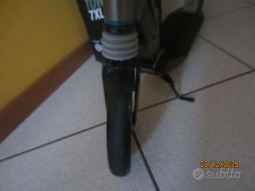 Vendo monopattino alta qualità, portata 100Kg, piegevole, freno posteriore e anteriore, doppia sospensione, sistema di chiusura rapida, cavalletto e ruote gommate.