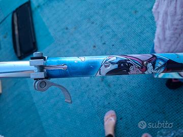 monopattino bambino cavalieri dello zodiaco. regolabile in altezza tramite buchi oigiando dentro (ultima foto). al massimo dalla base 73 cm al minimo 63 cm. consiglio se non riuscite con le dita spingte il pulsante con un oggetto per farlo entrare nel binario. richiudibile tramite levetta rossa scrivetemi prima di acquistare perchè non so che grandezza di pacco ho scelto