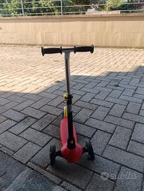 Monopattino da bambino Decathlon colore rosso e nero, adatto a bambini tra i 2 e i 6 anni. Manubrio regolabile.