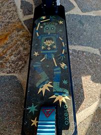 Monopattino acrobatico x bambino/ragazzino ok 4 - 14 anni Oxelo MID 1, con freno a pressione ruota posteriore. Il monopattino e' anche pieghevole, perfetto x poter essere trasportato nel bagagliaio della propria auto occupando poco spazio.