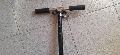 Pieghevole, manubrio regolabile in altezza. Utilizzabile anche da adulti, lo usavo anche io che sono alto 1.84. Usato poco da mia figlia 12enne