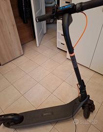 Ninebot E2 Plus E II; doppia sospensione anteriore, autonomia fino a 25 km; pneumatici 8.1" a nido d’ape che non necessitano di manutenzione; sistema a doppio freno; potenza nominale e massima: 300W o 500W, batteria 220 Wh; carico massima 90 kg, pieghevole Indicatori di direzione anteriori e posteriori integrati e 2 luci LED anteriori e posteriori da 1 W, incluso anche il campanello 3 modalità di guida: Standard, Sport e Risparmio energetico Tempo di ricarica totale di sole 7.5 ore Cruscotto a LED a colori extra-large e di facile lettura che visualizza le informazioni di guida in tempo reale per la comodità del conducente Facile da trasportare, grazie al peso ridotto di 16,8 kg 2 luci LED anteriori e posteriori da 1 W per una maggiore sicurezza durante la guida. Luce anteriore a LED da 1 W e luce posteriore con luce di frenata lampeggiante per migliorare la visibilità in condizioni di scarsa illuminazione Telaio affidabile e robusto in acciaio SPFH590 di tipo automobilistico per sostenere un carico pesante e durare più a lungo. Prezzo trattabile, usato pochissimo.