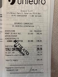 Monopattino xiaomi praticamente nuovo usato da un bambino davinti casa per pochi minuti ancora in garanzia sino al 26/06/26