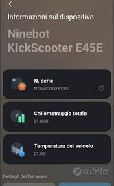 monopattino elettrico ninebot segway e45e con 45 km di autonomia completo di caricabatteria originale con solo 21 km di utilizzo