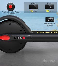 Vendo monopattino elettrico FantikkRide C9, inusato (quindi in condizioni perfette). Adatto per bambini e ragazzi fino a 60kg di peso. Due velocità disponibili (fino a 10 km/h e 16km/h). Molto semplice da utilizzare, non ha leve sul manubrio. Leggero (pesa 6kg), può essere facilmente ripiegato per riporlo. Altezza regolabile in modo veloce, da un minimo di 75cm fino ad un massimo di circa 95cm. Viste le dimensioni, sarebbe preferibile un ritiro di persona.