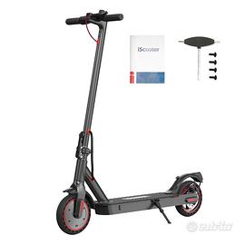 Passare dalla modalità di risparmio comfort alla modalità sport. La modalità Comfort spinge lo scooter a una velocità di 9,3 miglia orarie. Mentre la modalità sport lo spinge a una velocità elevata di 18,6 miglia orarie. **Motore potente** Il monopattino è dotato di un potente motore da 350 W, in grado di massimizzare la distanza di ogni corsa, percorrendo pendenze fino a 20°. Batteria ad alta capacità da 7500mAh, distanza massima di percorrenza fino a 30km, tempo di ricarica 4-6H. **Leggero** Lo scooter pesa solo 12 kg. La leggerezza e il design pieghevole sono facili da trasportare e da riporre, realizzando 3 secondi di piegatura. i9 scooter si adatta al bagagliaio della maggior parte delle auto, in modo da poterlo portare ovunque si voglia andare. **Durata** Pneumatico a nido d'ape da 8,5″, nessuna perdita d'aria. L'impermeabilità IP54 consente di guidare anche sotto la pioggia. Il pannello di controllo visualizza la velocità, la marcia, il chilometraggio e il livello della batteria. **Ideale per il pendolarismo** L'e-scooter può essere utilizzato per il pendolarismo o per viaggi a breve distanza ed è anche un regalo ideale per i vostri amici e familiari. **Specifiche tecniche** -Velocità massima: 30 km/h -Autonomia massima: 30 km -Batteria: 7.5Ah -Motore: 350W -Pendenza massima: 20 gradi -Pneumatico: 8,5'' a nido d'ape -Luce LED: faro e fanale posteriore -Carico massimo: 100 kg -Controllo app: Sì -Tempo di ricarica: 4-6 ore -Freno: Freno elettronico EBAS + freno a disco posteriore -Altezza richiesta: 120-200 cm -Temperatura di esercizio: -10-50 gradi Celsius -Temperatura di stoccaggio: -10-50 Celsius -Impermeabile: IP54 -Velocità: 6/15/25 km/h, 10/20/30km/h (dopo lo sblocco del limite di velocità)