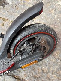 Peso 11,8kg - Batteria 6000mAh - Carica in 6h - Potenza 350 W - Velocità max 25km/h - Portata max 140kg - Autonomia 20km - Freno anteriore elettrico - Freno posteriore a disco - Cavalletto - Lampada anteriore - Frecce (rotte) - Catarifrangente posteriore - Display a led - 3 velocità: Eco/Normal/Sport - Ruote da 8,5 senza camera d'aria (indistruttibili, del valore di € 80) - Ripiegabile - Caricabatteria inluso.