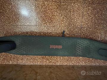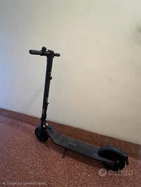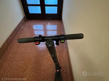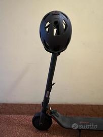 Ninebot KickScooter E25E Powered by Segway, USATO POCHISSIMO, OTTIME CONDIZIONI •300 W, Autonomia 25 km •Velocità massima fino a 25km/h •Luci a LED frontale (2.5W alta potenza), posteriore e del freno integrate, Luci Ambientali •Pneumatici 229 mm a doppia densità e anti-foratura da 9" (senza manutenzione) •Catarifrangenti frontali, laterali e posteriori certificati E-MARK •3 freni: Freno Anteriore Elettronico e Rigenerativo; Freno Posteriore Magnetico e Meccanico a Piede •Pendenza massima raggiungibile 15 % •Ammortizzatore anteriore •Resistenza all'acqua certificata IPX4, Capacità batteria215 Wh (5960 mAh •Sistema intelligente di gestione della batteria (BMS) •Controllo remoto via App e Bluetooth •3 modalità di guida (Eco, Standard, Sport), Cruise Control, Catarifrangenti certificati E-MARK frontali, laterali e posteriori •Informazioni sul Display LED (velocità, potenza residua, modalità, manutenzione, connessione bluetooth), Campanello •Con confezione originale •Firmware aggiornato •Scatola originale disponibile •SE integrato con una batteria esterna, raggiunge maggiore velocità e aumenta l’autonomia. + Casco certificato ABUS Hyban 2.0 con calotta rigida in ABS (valore del nuovo 60 euro) + secondo caricabatteria di riserva Originale nineboot (valore del nuovo 50 euro) – COMODISSIMO DA TENERE IN UFFICIO
