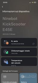 Vendo per inutilizzo monopattino elettrico Ninebot KickScooter E45E con doppia batteria (top di gamma della serie E). Il mezzo è in condizioni eccellenti, attivato il 31/05/2022 e con soli 744 km totali percorsi. Disponibile per visione e prova a Udine (o Gorizia)