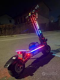 Monopattino elettrico potentissimo 7000w e 38ah velocita massima 100km/h e piu autonomia 100km e piu in base alla modalita scelta si puo mettere solo motore dietro solo motore davanti oppure entrambi per ogni motore ce le sue mappe dedicate ha i freni da moto potentisimi per maggiore sicurezza ha la pedana molto largha per maggiore sicurezza e comodita lo schermo e di ultima generazione a oled con accensione a chiave nfc che basta che appoggi sopra oppure con posword laccelleratore e a grilletto per maggiore sicurezza e comodita con comandi sopra le ruote sono molto grandi e larghe per maggiore sicurezza e stabilita ha doppio ammortizzatore sia allanteriore che al posteriore ha i led che si accendono su tutto il monopattino con un semplice tasto due fari daventi che si puo benissimo usare anche di sera perche sono tutti e sue molto potenti il monopattino volendo si puo bloccare a 25km/h che sarebbe la velocita legale con un semplice tasto il monopattino e nuovo lo vendo per initilizzo il prezzo e trattabile per qualsiasi cosa scrvetemi .