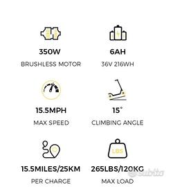 Monopattino elettrico Lexgo R9 praticamente nuovo, antifurto/accensione tecnologia NFC potenza 350W ideale per spostamenti veloci e efficienti. Batteria (36V 7,5Ah) con autonomia +- 30 km. Design portatile e pieghevole in tutta semplicità. Vendo per inutilizzo leggermente trattabile.
