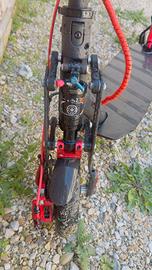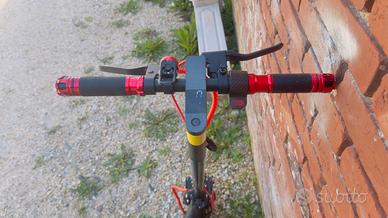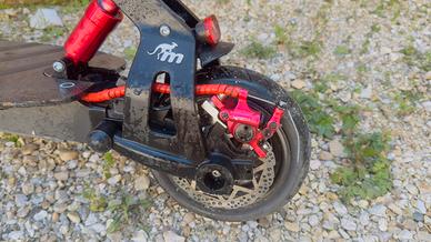 Monopattino elettrico modificato con pedana più grande e ammortizzatore ad aria e doppio freno a disco..