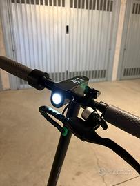 Vendo monopattino elettrico con le seguenti caratteristiche: •Telaio in alluminio •Portata 125KG •Pieghevole •Ruote solide (senza camera d’aria) da 10” •Ruota Frontale Autoammortizzante Honeycomb •Ammortizzatore frontale •Potenza del motore 350 Watt •3 velocità (eco 6km/h - drive 20km/h - sport 25km/h) •Batteria al lithio 36V 7,5Ah (tempo di ricarica circa ore 4 1/2) •Display integrato nel manubrio •Freno a disco posteriore •Luci LED frontale e posteriore (posteriore con funzione stop) •Peso circa 14Kg Ritiro di persona.