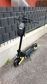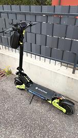 Vendo potente monopattino elettrico iSinwheel mod. D2, acquistato di recente e in condizioni impeccabili. Un mezzo robusto, scattante e confortevole, perfetto per gli spostamenti urbani e per divertirsi nel tempo libero. Il monopattino è stato trattato con la massima cura ed è visibile nelle foto. Si distingue per il suo design aggressivo in nero opaco con dettagli verde acido. Caratteristiche Principali: • 🏎️ Doppia Ammortizzazione: Sospensioni anteriori a molla (ben visibili nelle foto) e posteriore, per un comfort di guida eccezionale anche su strade sconnesse o pavé. • 🛑 Sicurezza al Top: Doppio freno a disco (anteriore e posteriore) per frenate decise e sicure. Pneumatici scolpiti da 10 pollici ideali per ogni tipo di asfalto. • 💡 Illuminazione: Potente faro LED anteriore e luce rossa posteriore per viaggiare in sicurezza anche di notte. • 🖥️ Display e Controlli: Grande display digitale centrale retroilluminato (con velocità, marcia e stato batteria). Manopole ergonomiche e comandi a portata di dito. • 🦶 Pedana Ampia e Sicura: Pedana spaziosa con grip antiscivolo e loghi iSinwheel e D2. Accessori Inclusi (Valore oltre 50€!): 1. 🎒 Borsa da Manubrio Originale iSinwheel: Borsa rigida nera, perfetta per riporre caricabatterie, telefono, chiavi o documenti. Si fissa facilmente e saldamente al piantone. 2. 📱 Portacellulare Universale: Supporto robusto in metallo e plastica, già montato sul manubrio, per avere il navigatore sempre sott'occhio. Condizioni: Il monopattino è pari al nuovo. Non presenta graffi significativi o segni di usura. La batteria è stata sempre gestita correttamente e mantiene un'ottima autonomia (come da specifiche originali iSinwheel). Chilometraggio molto basso. Perché acquistarlo? Se cerchi un monopattino che non sia il solito "giocattolo" da città, ma un mezzo solido, ammortizzato e potente per lunghi percorsi, l'iSinwheel D2 è la scelta giusta. Con la borsa e il portacellulare inclusi, è pronto all'uso fin da subito senza ulteriori spese!