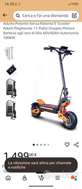 Monopattino elettrico x5, usato solo per provarlo, nuovo... Per le caratteristiche vedere su Amazon... Pesa 70kg, velocità 85 orari.. autonomia batteria 110 km...Anche sedile per stare comodi originale Prezzo 900 euro grazie.. Gabriele