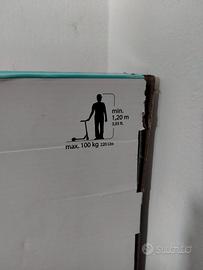 adesivo poco danneggiato, ha soltanto qualche graffio, anche le ruote sono quasi nuove.