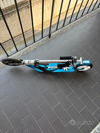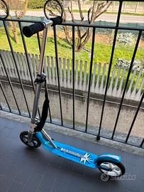 vendo monopattino hudora color nero/azzurro modello big wheel, ruote piene e grandi, con ottimo scorrimento, ottimo anche per tragitti non proprio corti, dotato di cinghia per portarlo in giro, cavalletto a molla, manopole retraibili e 4 regolazioni in altezza, presenta normali segni di usura dovuti al suo utilizzo, possiedo anche il fratello gemello rosso, se presi in coppia scalo qualcosa dal prezzo