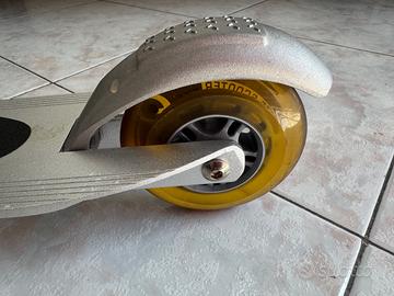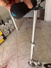 super compatto pieghevole e con manubrio telescopico. prodotto adatto a Ragazzi/Adulti. Costo in negozio 219,90€ (vedi anche sul sito micro micro-mobility.it per averne conferma). MAI USATO, totalmente nuovo. Perfetto per muoversi in città nelle domeniche ecologiche o per velocizzare lunghi tratti a piedi. * Misure pedana 50x 10cm * Altezza manubrio telescopico: da 65 a 95 cm * Sostiene fino a 100kg. * provvisto di cavalletto * blocco di sicurezza
