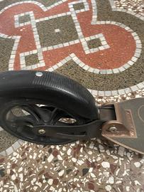 Monopattino marchio Micro in alluminio, pieghevole e leggero, con ruote grandi per maggiore stabilità. Facile da trasportare, ideale per spostamenti in città. Da ragazzi e adulti.